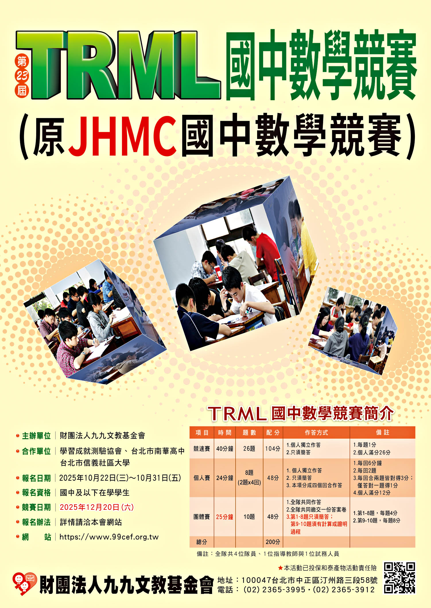 校園公告 公告主旨 第23屆TRML國中數學競賽 發佈日期 2025 年 10 月 13 日 發佈單位 教學組 公告類別 活動競賽 公告等級 無 點閱次數 70 公告內容 相關附件 【2025-10-13】「文化部文化資產局-文化資產教師增能線上研 習推廣課程」第二輪課程 【2025-10-13】臺南一中辦理115學年度高中科學班甄選入學暨教育理念說明會